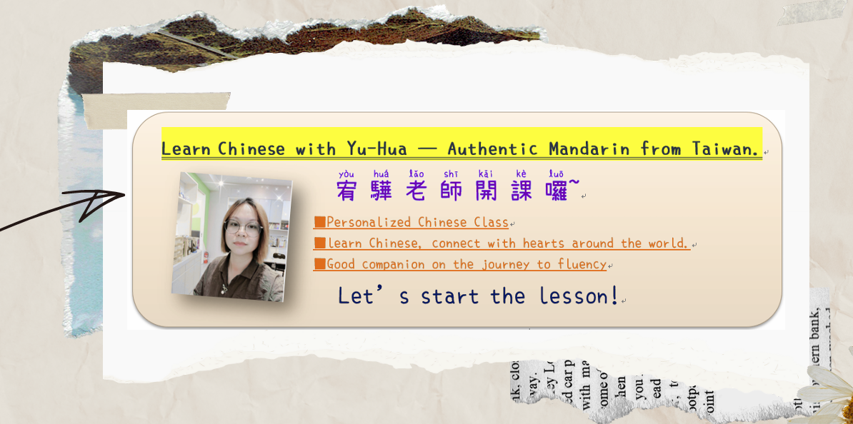 Hi everyone! I’m Yu-Hua from Taiwan. Chinese is my native language, and I’m passionate about helping learners discover its beauty and practicality. Besides, I’ve been an English tutor for 16 years, so I have lots of experience in language teaching. From my class, I enjoy using real-life stories and examples to make learning Chinese enjoyable and easy. From daily talk to business meetings, you’ll learn to speak naturally and confidently. I can also design personalized lessons for your lifestyle or business needs. Learning Chinese is not just about language — It’s about connecting with the world. I can’t wait to see you in class soon!
